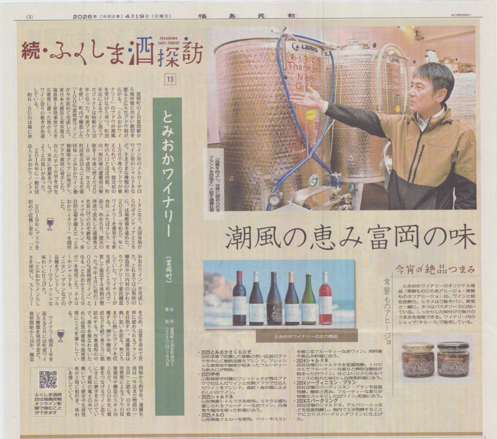 4月19日(日)の福島民報「続・ふくしま酒探訪」にとみおかワイナリーをご紹介いただきました。