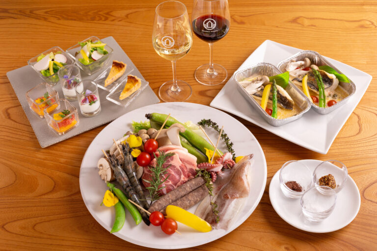 福島県産を中心とした厳選肉・魚介類を、赤ワインの絞りかすを使用した「ワインパミス塩」や楢葉町の有機栽培柚子を使用した「ゆず太郎の郷ゆず塩」と一緒にお楽しみいただけます。